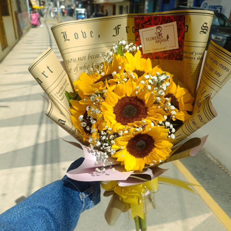 Llena de luz y alegría cualquier momento con nuestro radiante ramo de girasoles. Estas flores, símbolo de energía positiva, admiración y felicidad, capturan la esencia del sol en cada pétalo. Perfecto para regalar sonrisas, levantar el ánimo o expresar buenos deseos, este ramo es ideal para cumpleaños, agradecimientos o simplemente para iluminar el día de alguien especial.